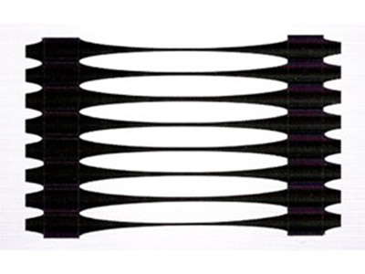 單向拉伸土工格柵是一種以高分子聚合物為主要原料,加入一定的防紫外線、抗老化助劑,經(jīng)過單向拉伸使原來分布散亂的鏈形分子重新定向排列呈線性狀態(tài),經(jīng)擠出壓成薄板再?zèng)_規(guī)則孔網(wǎng),然后縱向拉伸而成的高強(qiáng)度土工材料。這種過程中使高分子成定向線性狀態(tài)并形成分布均勻、節(jié)點(diǎn)強(qiáng)度高的長(zhǎng)橢圓形網(wǎng)狀整體性結(jié)構(gòu)。此種結(jié)構(gòu)具有相當(dāng)高的拉伸強(qiáng)度和拉伸模量,抗拉強(qiáng)度達(dá)到100-200Mpa,接近低碳鋼的水平,大大優(yōu)于傳統(tǒng)的或現(xiàn)有的加筋材料,特別是該公司此類產(chǎn)品更具有超國際水平的高早期(伸長(zhǎng)率在2%—5%)拉伸強(qiáng)度和拉伸模量。給土壤提供了理想的力的承擔(dān)和擴(kuò)散的連鎖系統(tǒng)。該產(chǎn)品拉伸強(qiáng)度大(>150Mpa),適應(yīng)各種土壤,是目前廣為采用的加筋加固材料。