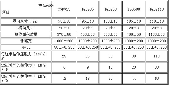 單向拉伸塑料土工格柵,是由高分子聚合物經(jīng)擠出,然后再縱向拉伸而成。這樣形成的是具有整體性且分布均勻的橢圓形網(wǎng)結(jié)構(gòu),具有相當(dāng)高的拉伸強(qiáng)度和拉伸模量,這種結(jié)構(gòu)的土工格柵給土壤提供了連鎖系統(tǒng)。該產(chǎn)品,拉伸強(qiáng)度大(>150MPa)適于名型性能指標(biāo)都優(yōu)于未經(jīng)拉伸的土工網(wǎng),是目前一種理想的加筋加固材料。