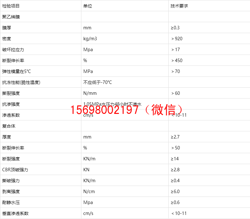 表6.1 復合土工膜性能指標