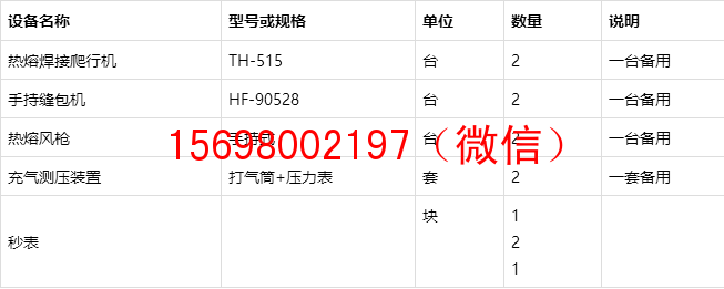 9.3.5每次焊接前,均應隨機取樣膜上試焊,進行充氣試驗。測試標準為:氣壓0.2MPa,5min內無明顯壓降方為合格。