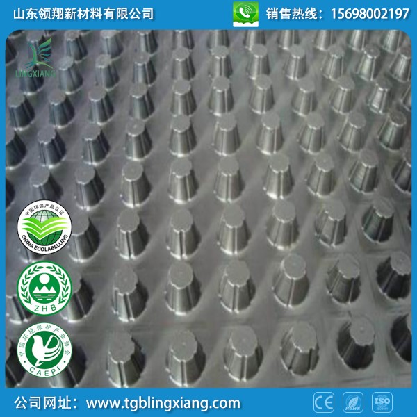 還有一種立體蓄排水板,也是經常用于園林綠化、屋頂花園、地下車庫頂板上的,這種立體蓄排水板具有良好的蓄水、排水、防水的功能。立體蓄排水板的長寬一般為2000mm*15000mm(2m*15m),其板材厚度一般分為0.8mm、1.0mm、1.5mm三種,相同厚度的板材也可以做不同高度的凸起鼓泡,一般鼓泡高度分10mm、20mm兩種。各種規格的立體蓄排水板價格也不相同。