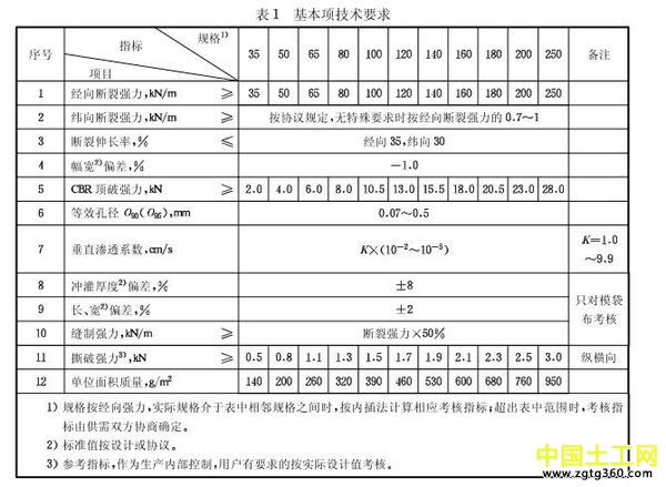 200g/㎡的長(zhǎng)絲機(jī)織土工布的經(jīng)向斷裂強(qiáng)力為≥50KN/m,緯向斷裂強(qiáng)力為經(jīng)向斷裂強(qiáng)力的0.7-1.0倍,斷裂伸長(zhǎng)率徑向≤35%緯向≤30%,幅寬偏差-1.0%,CBR頂破強(qiáng)力≥4.0KN,等效孔徑O90 0.07-0.5mm,垂直滲透系數(shù)(1.0~9.9)×(10負(fù)二次方~10負(fù)五次方),撕破強(qiáng)力≥0.8KN,沖灌厚度偏差±8%,長(zhǎng)寬偏差±2%,縫制強(qiáng)力≥斷裂強(qiáng)力×50% KN/m,其中沖灌厚度偏差、長(zhǎng)寬偏差、縫制強(qiáng)力只對(duì)模袋布考核。