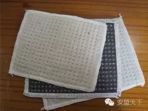 膨潤土防水毯(GCL)兩邊的土工織物分別為無紡布和編織布,鋪設時無紡布應對著迎水面,即無紡布朝上。